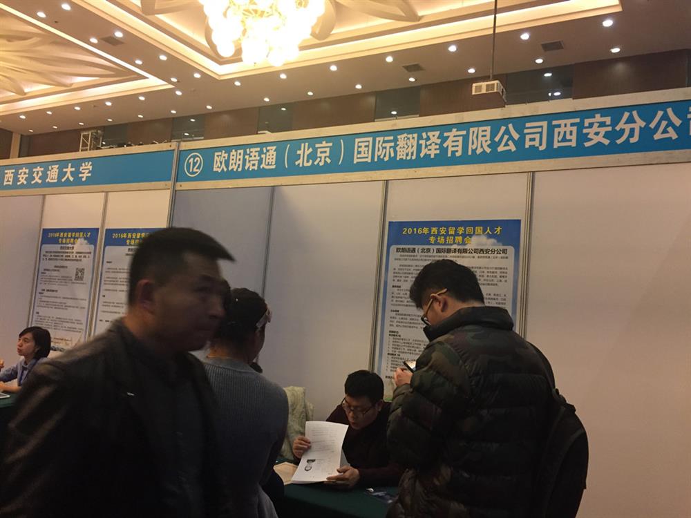 为贯彻落实中央和省、市关于引进海外高层次人才的战略部署,大力吸引科技前沿和产业高端的海外留学人才来西安创新创业,为我市重点产业发展、重点工程和项目建设引进急需紧缺人才。由西安市委组织部、西安市人力资源和社会保障局主办,“2016年西安留学回国人才专场招聘会暨交流恳谈会”12月3日在西安曲江惠宾苑召开。西安欧朗翻译公司总经理茹伟先生作为主要企业代表在上午的企业与留学生代表交流恳谈会上做了发言。下午的招聘会有60余家企业公司参会,近100多位留学生参会,此次招聘会的成功举办不仅使留学生们得到充分表现的机会,而且也让他们在以后的工作中有目的的培养自己的能力,和完善自我。